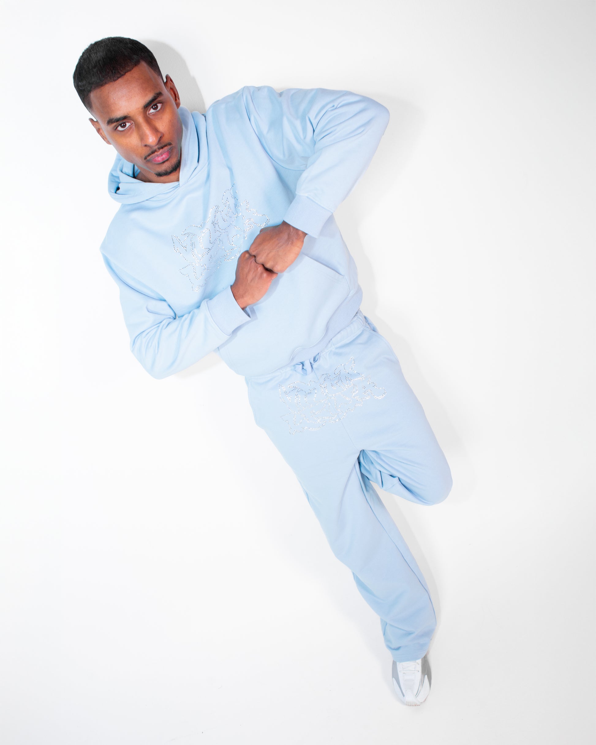 Baby Blue sweatpants with black vitunleija® rhinestone print